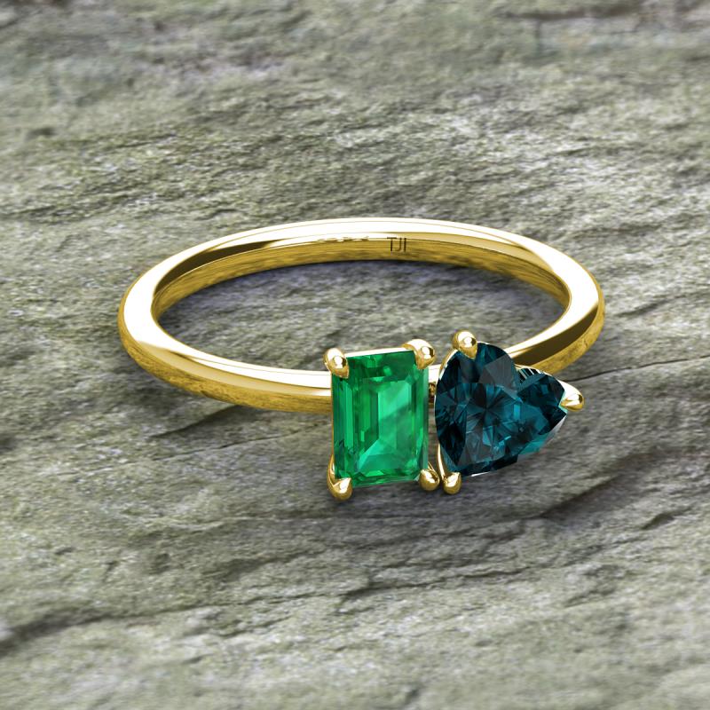 Emerald Shape Lab Created Emerald & Heart Shape London Blue Topaz 1.95 ctw Four Prong Womens 2 Stone Duo Engagement Ring 14K Yellow Gold More Details ...