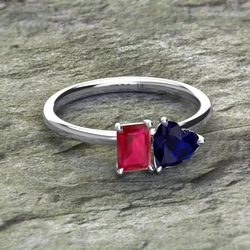 Emerald Shape Lab Created Ruby & Heart Shape Lab Created Blue Sapphire 2.30 ctw Four Prong Womens 2 Stone Duo Engagement Ring 14K White Gold More Details ...