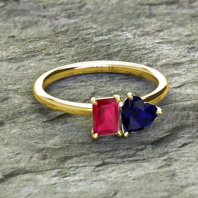 Emerald Shape Lab Created Ruby & Heart Shape Lab Created Blue Sapphire 2.30 ctw Four Prong Womens 2 Stone Duo Engagement Ring 14K Yellow Gold More Details ...