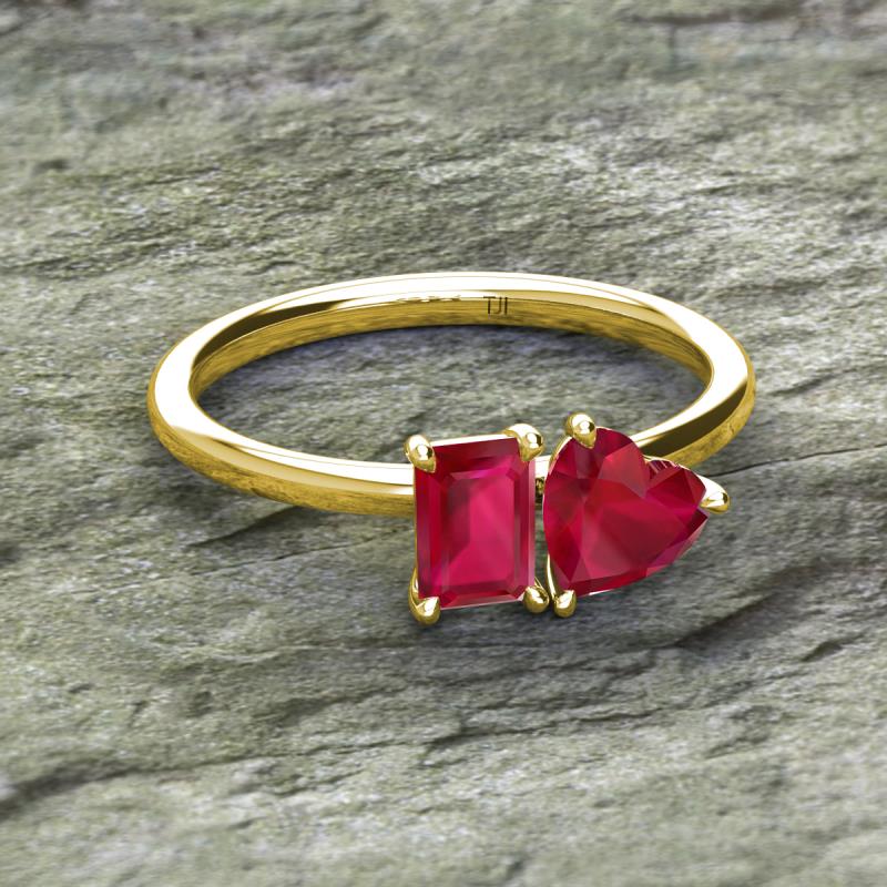 Emerald Shape Lab Created Ruby & Heart Shape Lab Created Ruby 2.20 ctw Four Prong Womens 2 Stone Duo Engagement Ring 14K Yellow Gold More Details ...