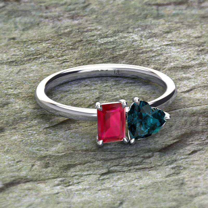 Emerald Shape Lab Created Ruby & Heart Shape London Blue Topaz 2.40 ctw Four Prong Womens 2 Stone Duo Engagement Ring 18K White Gold More Details ...