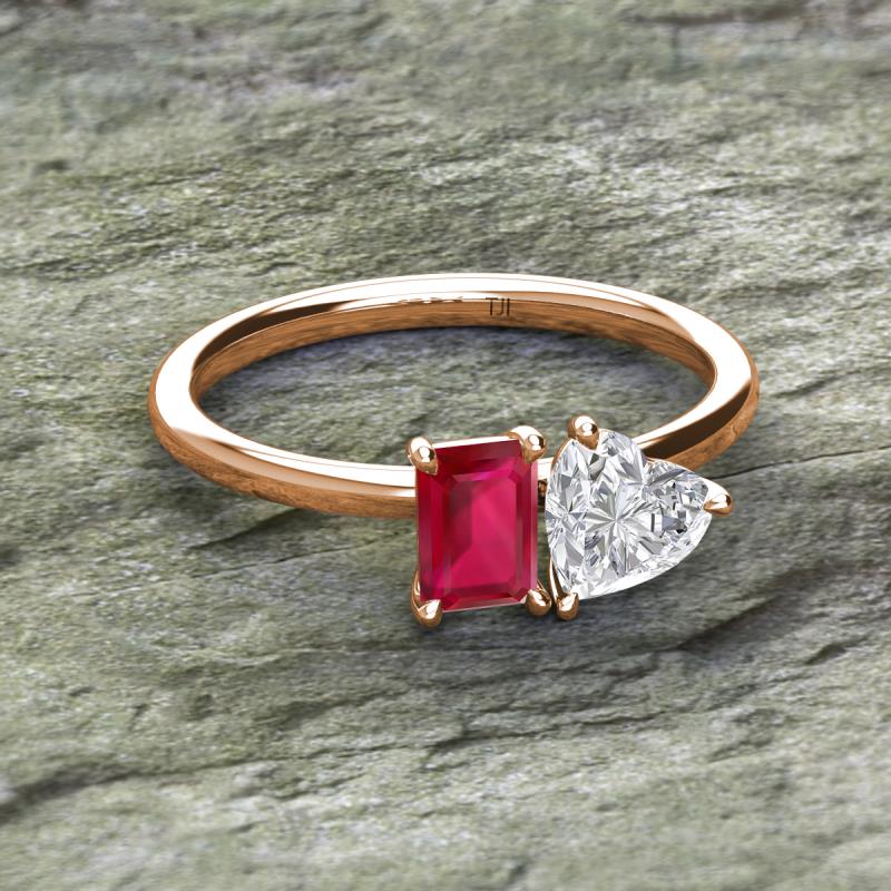 Emerald Shape Lab Created Ruby & Heart Shape White Sapphire 2.50 ctw Four Prong Womens 2 Stone Duo Engagement Ring 14K Rose Gold More Details ...