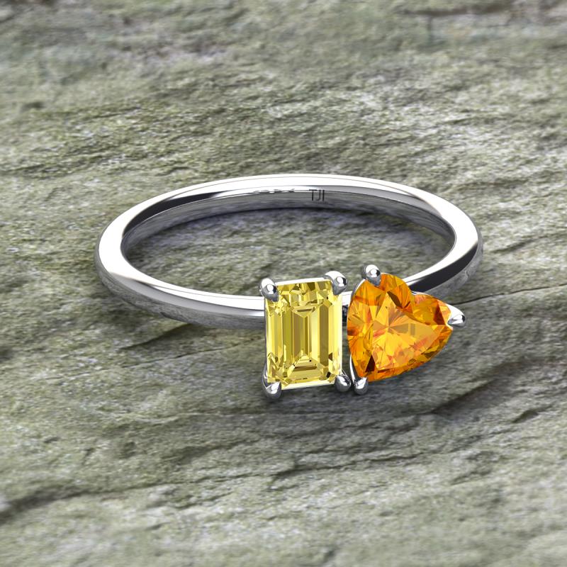 Simple and beautiful, this enchanting 2 Stone Duo Ring flaunting an Emerald Shape Lab Created Yellow Sapphire dazzling along with Heart Shape Citrine are perfect for the women who have a modern outlook and are willing to be unique.