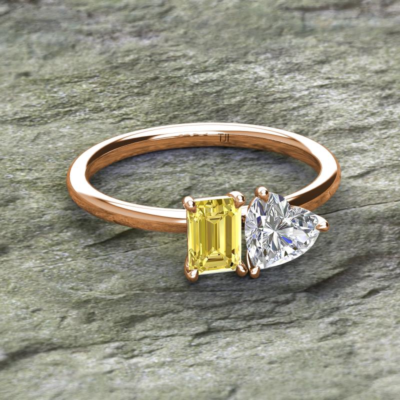 Emerald Shape Lab Created Yellow Sapphire & Heart Shape Forever One Moissanite 2.10 ctw Four Prong Womens 2 Stone Duo Engagement Ring 18K Rose Gold More Details ...