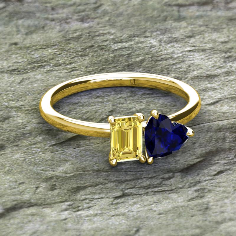 Emerald Shape Lab Created Yellow Sapphire & Heart Shape Lab Created Blue Sapphire 2.30 ctw Four Prong Womens 2 Stone Duo Engagement Ring 18K Yellow Gold More Details ...
