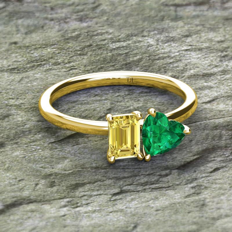 Emerald Shape Lab Created Yellow Sapphire & Heart Shape Lab Created Emerald 2.15 ctw Four Prong Womens 2 Stone Duo Engagement Ring 14K Yellow Gold More Details ...