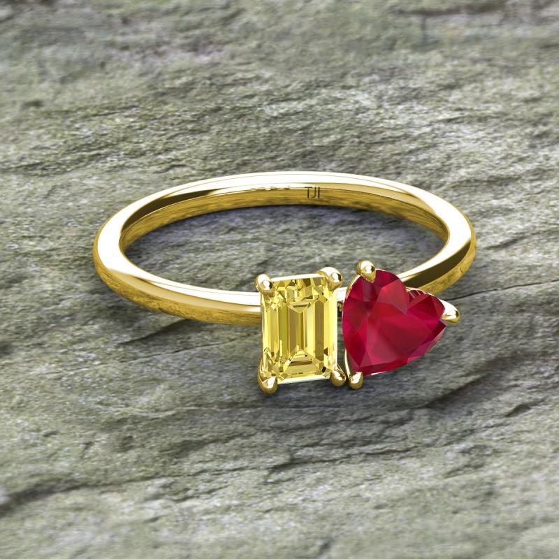 Emerald Shape Lab Created Yellow Sapphire & Heart Shape Lab Created Ruby 2.20 ctw Four Prong Womens 2 Stone Duo Engagement Ring 14K Yellow Gold More Details ...