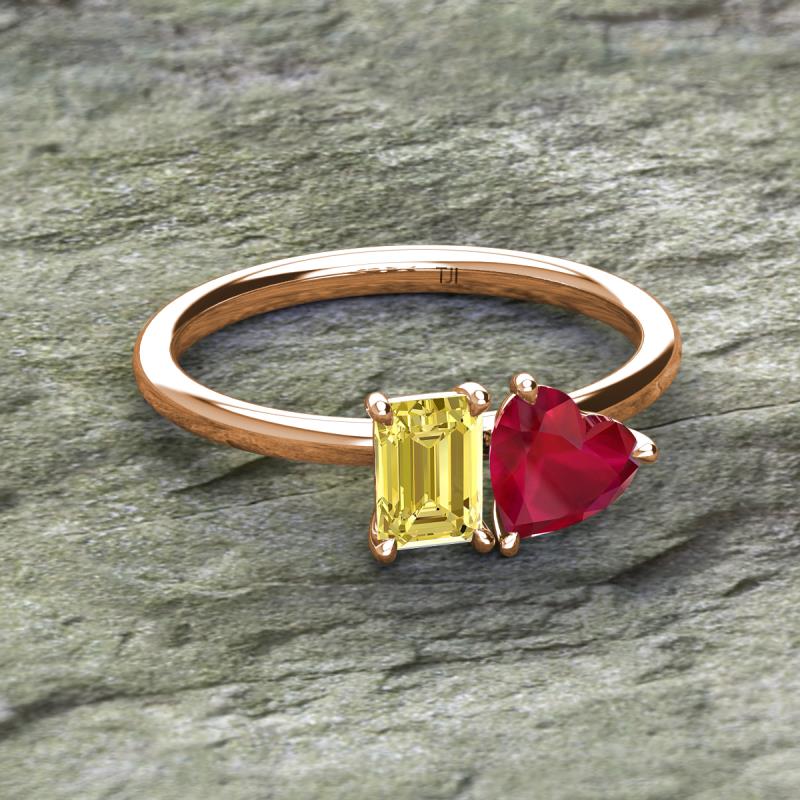 Emerald Shape Lab Created Yellow Sapphire & Heart Shape Lab Created Ruby 2.20 ctw Four Prong Womens 2 Stone Duo Engagement Ring 14K Rose Gold More Details ...