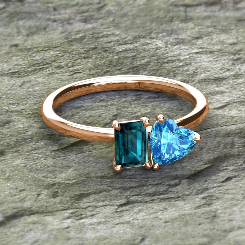 Simple and beautiful, this enchanting 2 Stone Duo Ring flaunting an Emerald Shape London Blue Topaz dazzling along with Heart Shape Blue Topaz are perfect for the women who have a modern outlook and are willing to be unique.