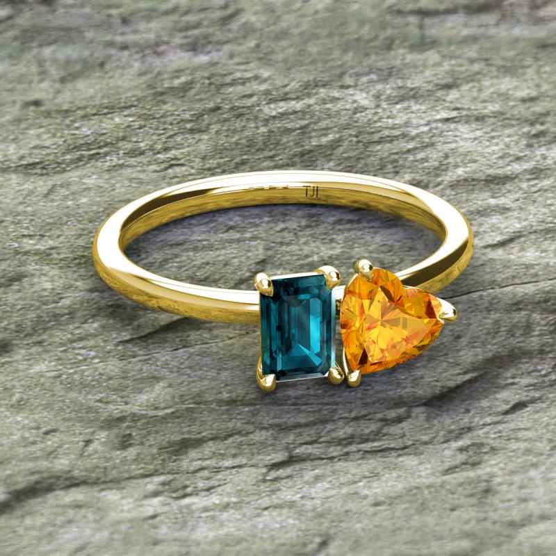 Simple and beautiful, this enchanting 2 Stone Duo Ring flaunting an Emerald Shape London Blue Topaz dazzling along with Heart Shape Citrine are perfect for the women who have a modern outlook and are willing to be unique.
