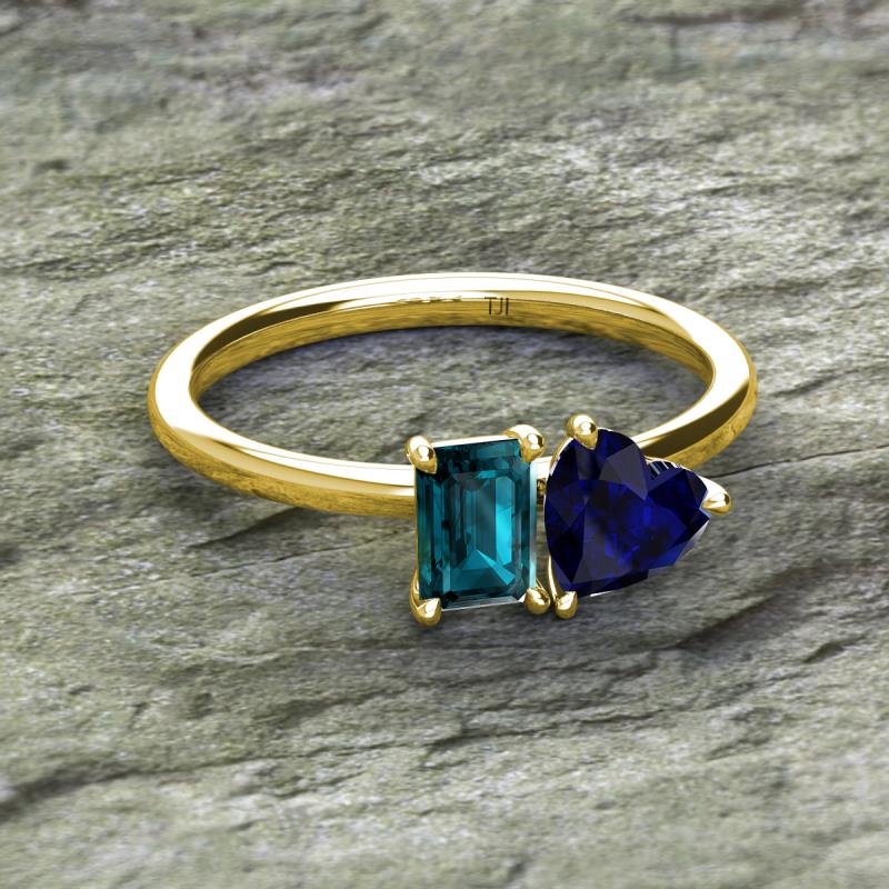 Simple and beautiful, this enchanting 2 Stone Duo Ring flaunting an Emerald Shape London Blue Topaz dazzling along with Heart Shape Lab Created Blue Sapphire are perfect for the women who have a modern outlook and are willing to be unique.