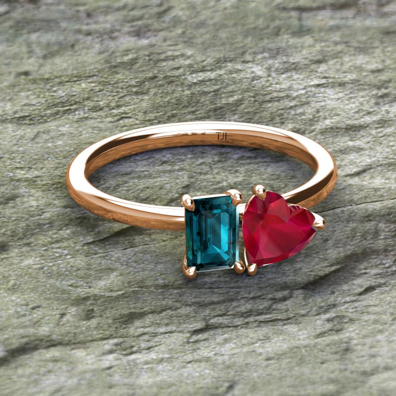 Emerald Shape London Blue Topaz & Heart Shape Lab Created Ruby 2.37 ctw Four Prong Womens 2 Stone Duo Engagement Ring 18K Rose Gold More Details ...