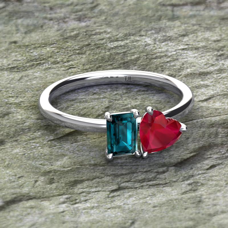 Emerald Shape London Blue Topaz & Heart Shape Lab Created Ruby 2.37 ctw Four Prong Womens 2 Stone Duo Engagement Ring Platinum More Details ...
