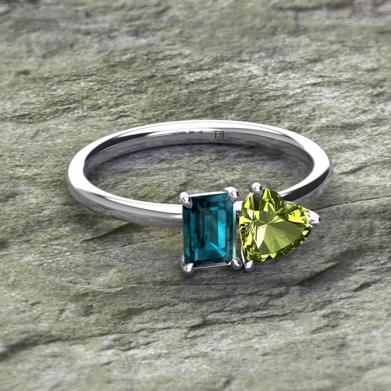 Emerald Shape London Blue Topaz & Heart Shape Peridot 2.25 ctw Four Prong Womens 2 Stone Duo Engagement Ring 14K White Gold More Details ...