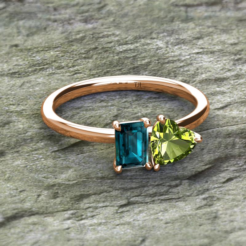 Emerald Shape London Blue Topaz & Heart Shape Peridot 2.25 ctw Four Prong Womens 2 Stone Duo Engagement Ring 14K Rose Gold More Details ...