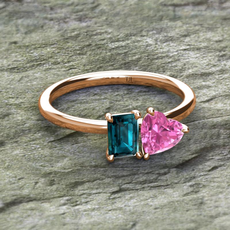 Emerald Shape London Blue Topaz & Heart Shape Pink Sapphire 2.30 ctw Four Prong Womens 2 Stone Duo Engagement Ring 14K Rose Gold More Details ...