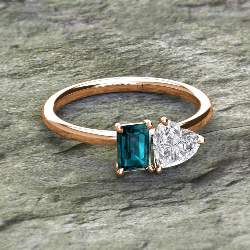 Emerald Shape London Blue Topaz & Heart Shape White Sapphire 2.40 ctw Four Prong Womens 2 Stone Duo Engagement Ring 10K Rose Gold More Details ...