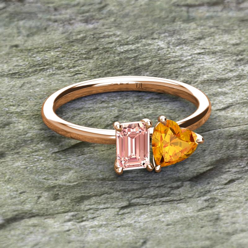 Emerald Shape Morganite & Heart Shape Citrine 1.58 ctw Four Prong Womens 2 Stone Duo Engagement Ring 10K Rose Gold More Details ...