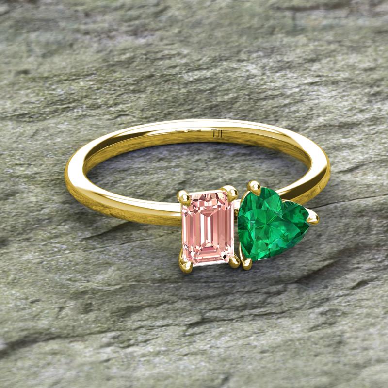 Emerald Shape Morganite & Heart Shape Lab Created Emerald 1.65 ctw Four Prong Womens 2 Stone Duo Engagement Ring 18K Yellow Gold More Details ...