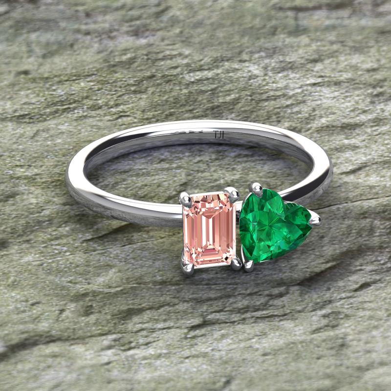 Emerald Shape Morganite & Heart Shape Lab Created Emerald 1.65 ctw Four Prong Womens 2 Stone Duo Engagement Ring Platinum More Details ...