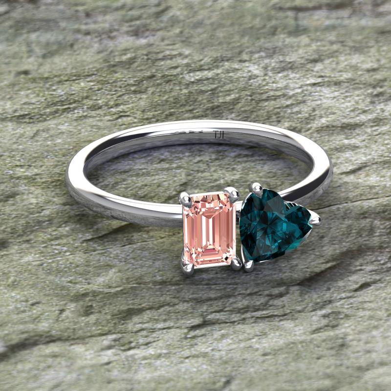 Simple and beautiful, this enchanting 2 Stone Duo Ring flaunting an Emerald Shape Morganite dazzling along with Heart Shape London Blue Topaz are perfect for the women who have a modern outlook and are willing to be unique.