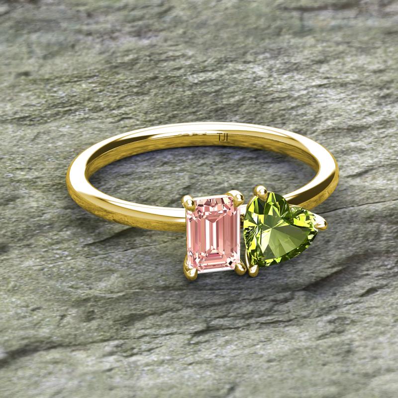 Emerald Shape Morganite & Heart Shape Peridot 1.85 ctw Four Prong Womens 2 Stone Duo Engagement Ring 14K Yellow Gold More Details ...