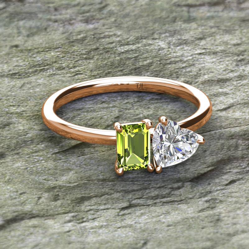 Emerald Shape Peridot & Heart Shape Forever Brilliant Moissanite 1.80 ctw Four Prong Womens 2 Stone Duo Engagement Ring 10K Rose Gold More Details ...