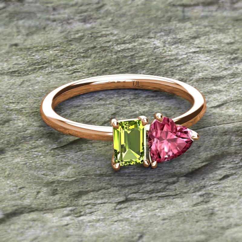 Emerald Shape Peridot & Heart Shape Pink Tourmaline 1.90 ctw Four Prong Womens 2 Stone Duo Engagement Ring 18K Rose Gold More Details ...