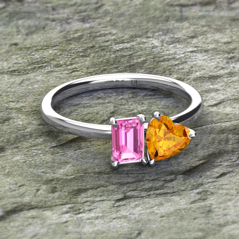 Simple and beautiful, this enchanting 2 Stone Duo Ring flaunting an Emerald Shape Pink Sapphire dazzling along with Heart Shape Citrine are perfect for the women who have a modern outlook and are willing to be unique.