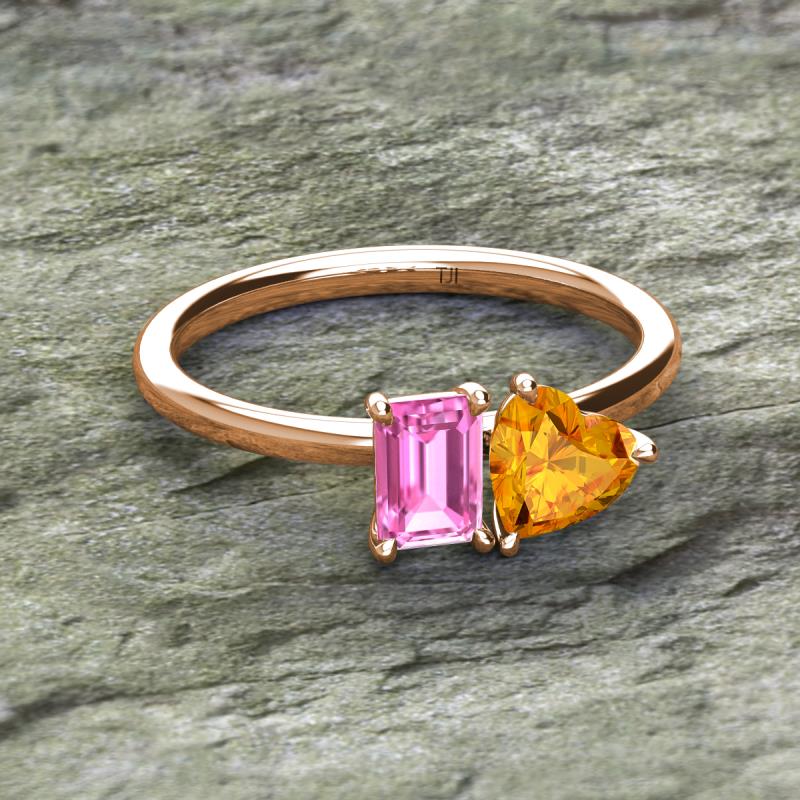 Emerald Shape Pink Sapphire & Heart Shape Citrine 1.68 ctw Four Prong Womens 2 Stone Duo Engagement Ring 18K Rose Gold More Details ...