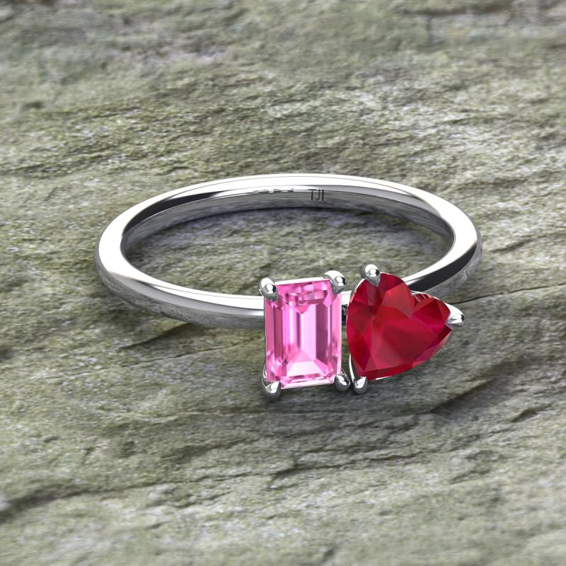 Emerald Shape Pink Sapphire & Heart Shape Lab Created Ruby 1.80 ctw Four Prong Womens 2 Stone Duo Engagement Ring 14K White Gold More Details ...