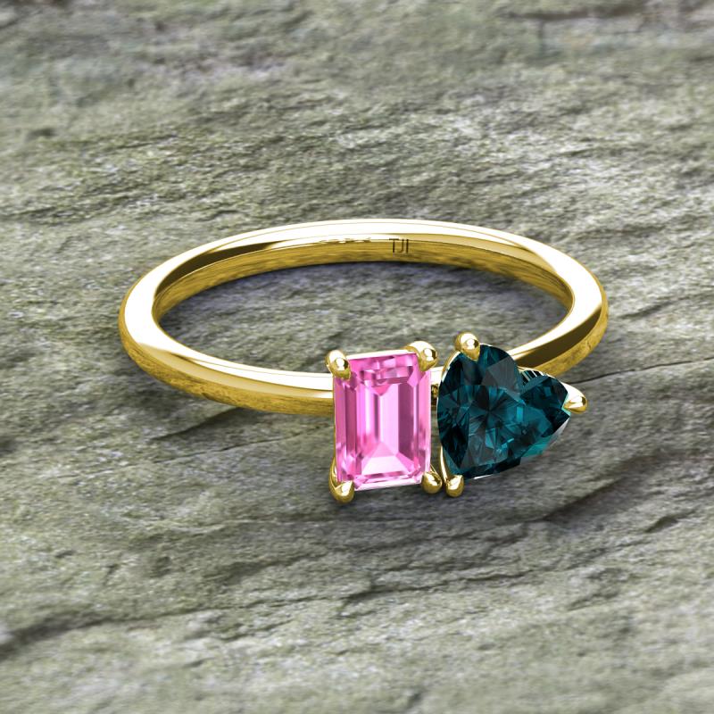 Emerald Shape Pink Sapphire & Heart Shape London Blue Topaz 2.00 ctw Four Prong Womens 2 Stone Duo Engagement Ring 14K Yellow Gold More Details ...