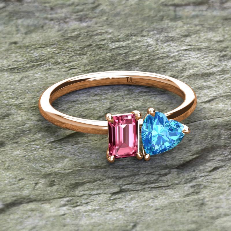 Emerald Shape Pink Tourmaline & Heart Shape Blue Topaz 2.10 ctw Four Prong Womens 2 Stone Duo Engagement Ring 14K Rose Gold More Details ...