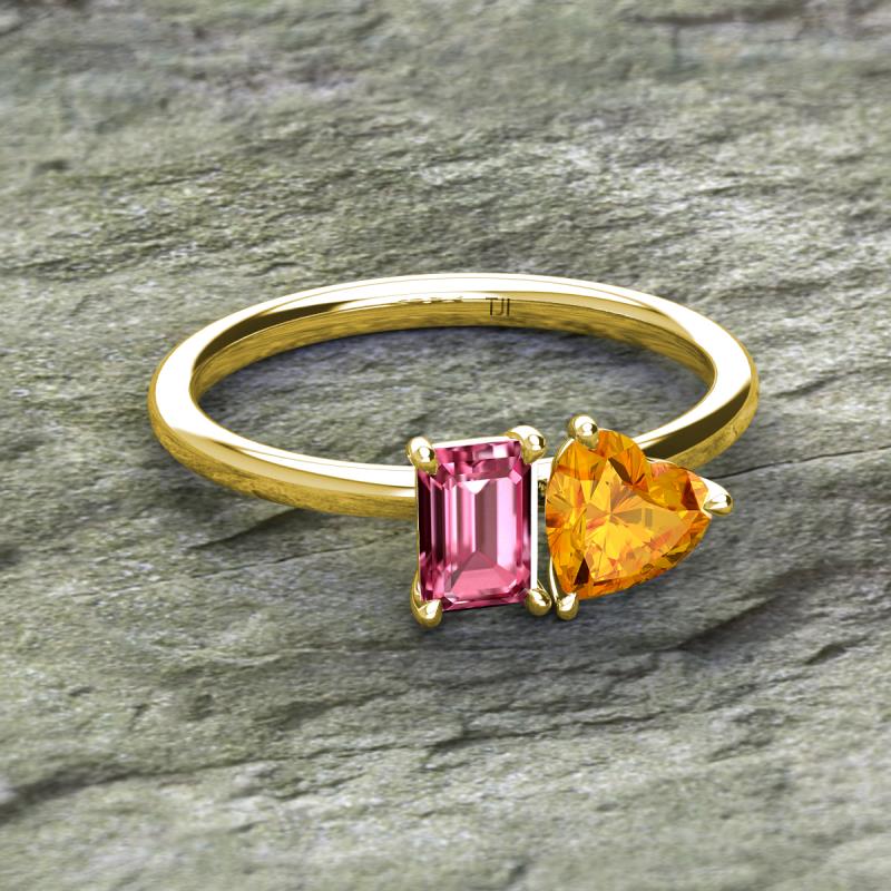 Emerald Shape Pink Tourmaline & Heart Shape Citrine 1.78 ctw Four Prong Womens 2 Stone Duo Engagement Ring 14K Yellow Gold More Details ...
