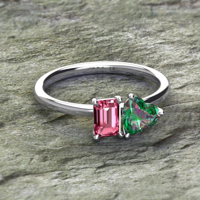 Emerald Shape Pink Tourmaline & Heart Shape Lab Created Alexandrite 1.85 ctw Four Prong Womens 2 Stone Duo Engagement Ring 18K White Gold More Details ...