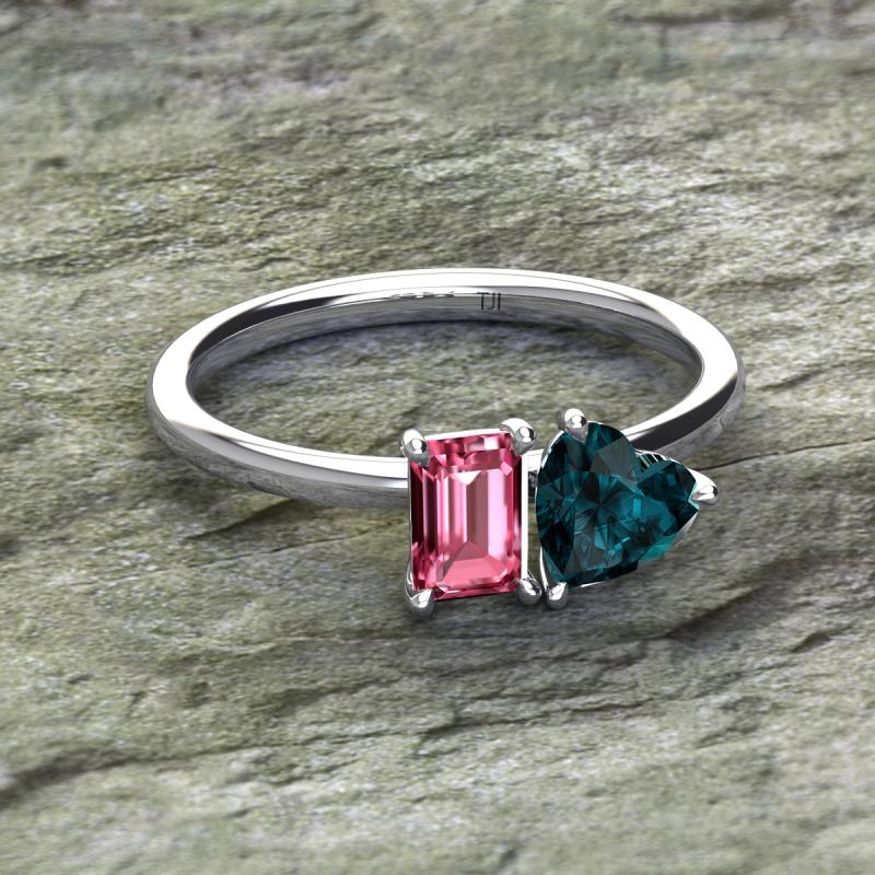 Emerald Shape Pink Tourmaline & Heart Shape London Blue Topaz 2.10 ctw Four Prong Womens 2 Stone Duo Engagement Ring 925 Sterling Silver More Details ...