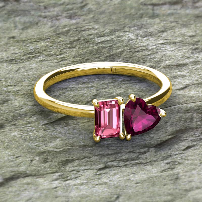 Emerald Shape Pink Tourmaline & Heart Shape Rhodolite Garnet 2.20 ctw Four Prong Womens 2 Stone Duo Engagement Ring 18K Yellow Gold More Details ...