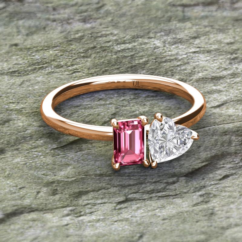 Emerald Shape Pink Tourmaline & Heart Shape White Sapphire 2.20 ctw Four Prong Womens 2 Stone Duo Engagement Ring 18K Rose Gold More Details ...