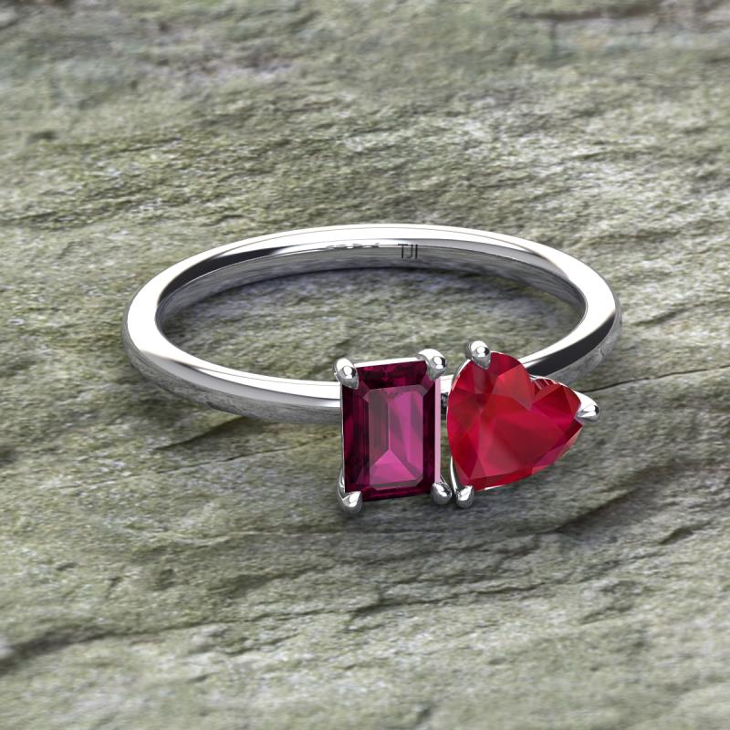 Emerald Shape Rhodolite Garnet & Heart Shape Lab Created Ruby 2.10 ctw Four Prong Womens 2 Stone Duo Engagement Ring 10K White Gold More Details ...