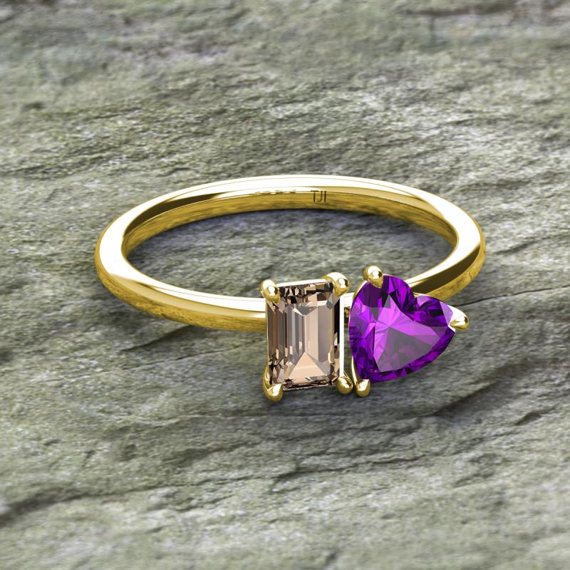 Emerald Shape Smoky Quartz & Heart Shape Amethyst 1.68 ctw Four Prong Womens 2 Stone Duo Engagement Ring 10K Yellow Gold More Details ...