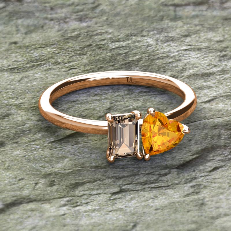 Emerald Shape Smoky Quartz & Heart Shape Citrine 1.68 ctw Four Prong Womens 2 Stone Duo Engagement Ring 10K Rose Gold More Details ...