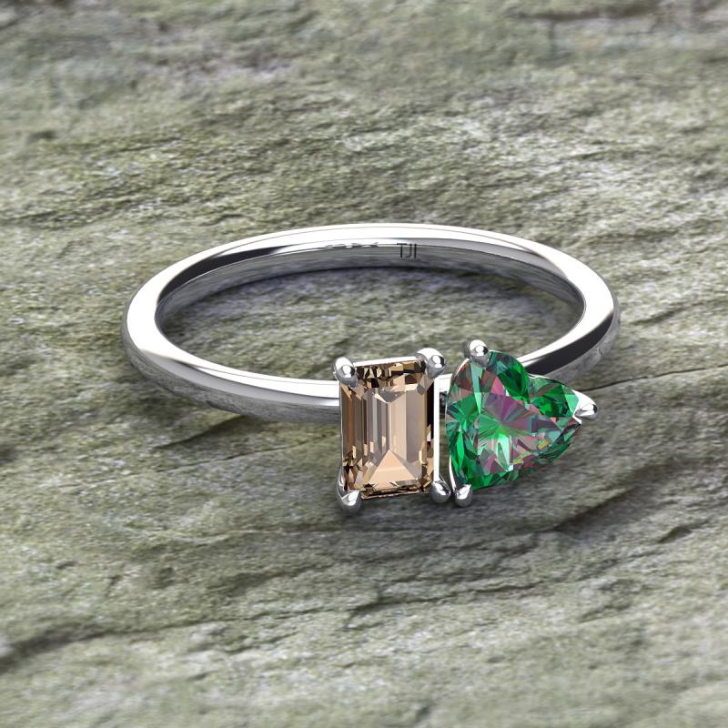 Simple and beautiful, this enchanting 2 Stone Duo Ring flaunting an Emerald Shape Smoky Quartz dazzling along with Heart Shape Lab Created Alexandrite are perfect for the women who have a modern outlook and are willing to be unique.