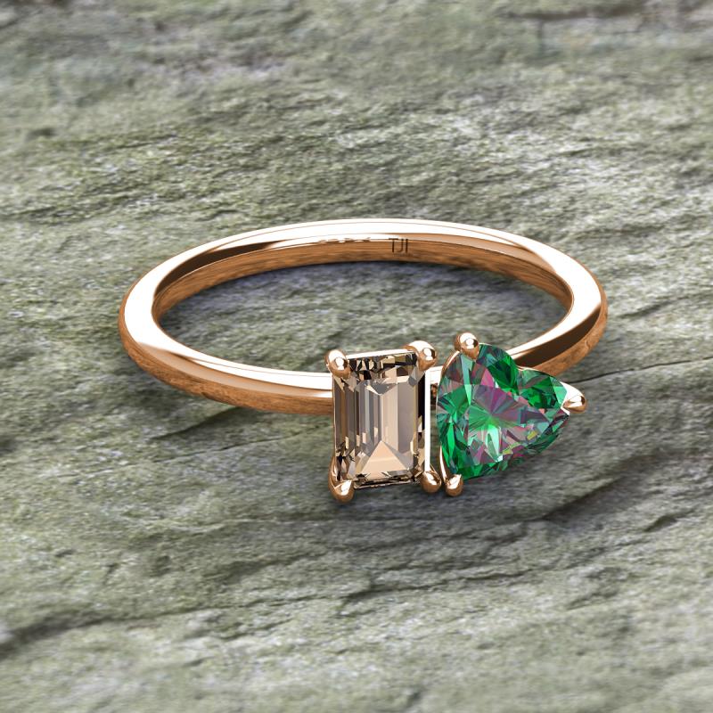 Emerald Shape Smoky Quartz & Heart Shape Lab Created Alexandrite 1.75 ctw Four Prong Womens 2 Stone Duo Engagement Ring 10K Rose Gold More Details ...