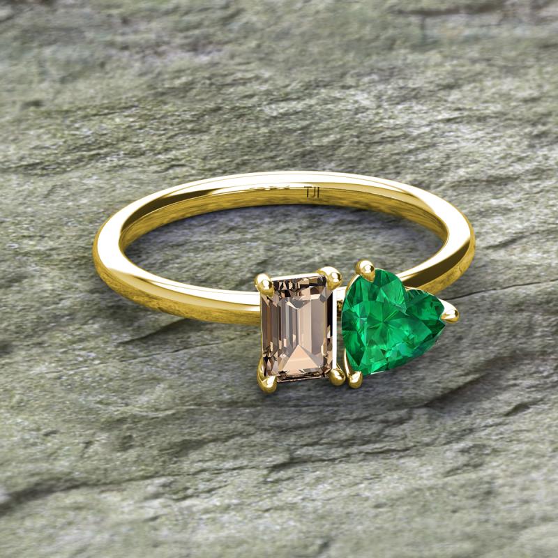 Emerald Shape Smoky Quartz & Heart Shape Lab Created Emerald 1.75 ctw Four Prong Womens 2 Stone Duo Engagement Ring 14K Yellow Gold More Details ...