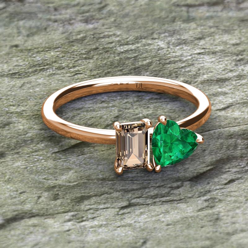 Emerald Shape Smoky Quartz & Heart Shape Lab Created Emerald 1.75 ctw Four Prong Womens 2 Stone Duo Engagement Ring 10K Rose Gold More Details ...