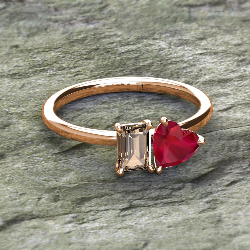 Emerald Shape Smoky Quartz & Heart Shape Lab Created Ruby 1.80 ctw Four Prong Womens 2 Stone Duo Engagement Ring 18K Rose Gold More Details ...