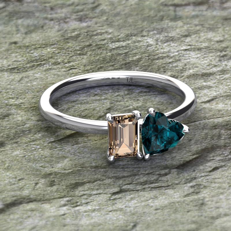 Emerald Shape Smoky Quartz & Heart Shape London Blue Topaz 2.00 ctw Four Prong Womens 2 Stone Duo Engagement Ring 14K White Gold More Details ...