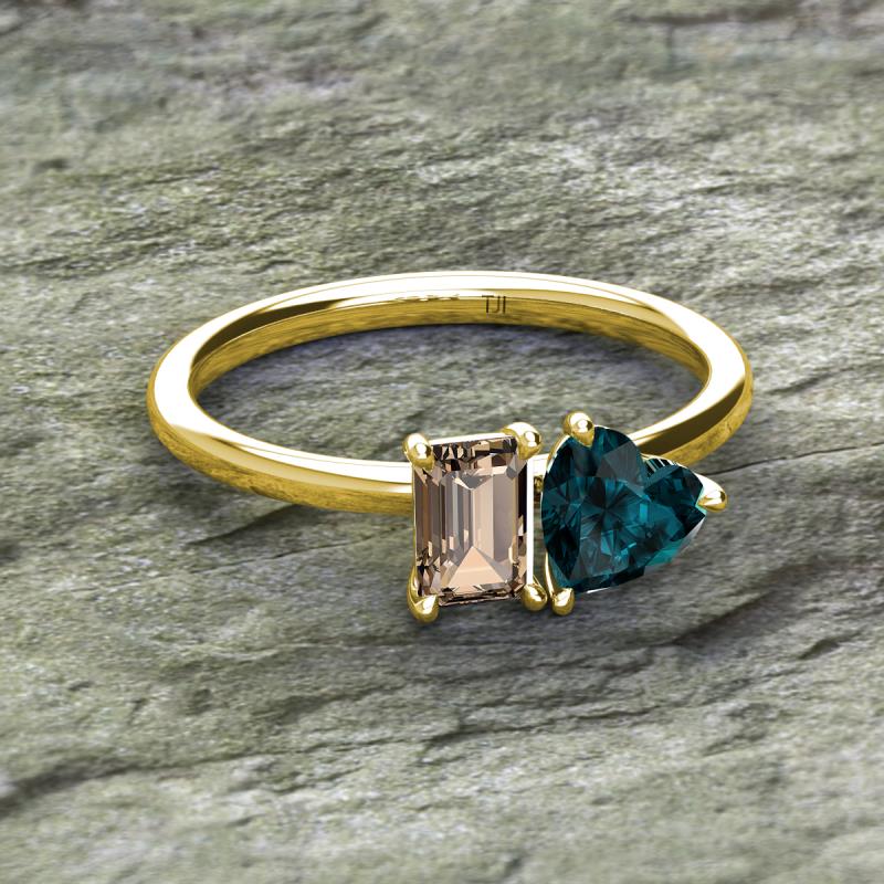 Emerald Shape Smoky Quartz & Heart Shape London Blue Topaz 2.00 ctw Four Prong Womens 2 Stone Duo Engagement Ring 14K Yellow Gold More Details ...