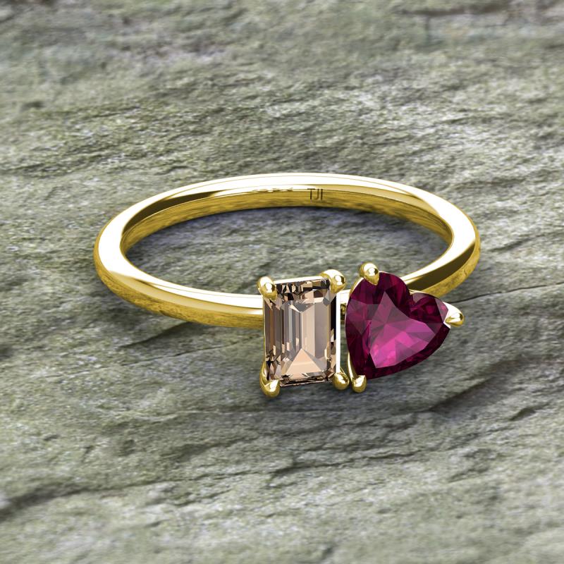 Simple and beautiful, this enchanting 2 Stone Duo Ring flaunting an Emerald Shape Smoky Quartz dazzling along with Heart Shape Rhodolite Garnet are perfect for the women who have a modern outlook and are willing to be unique.