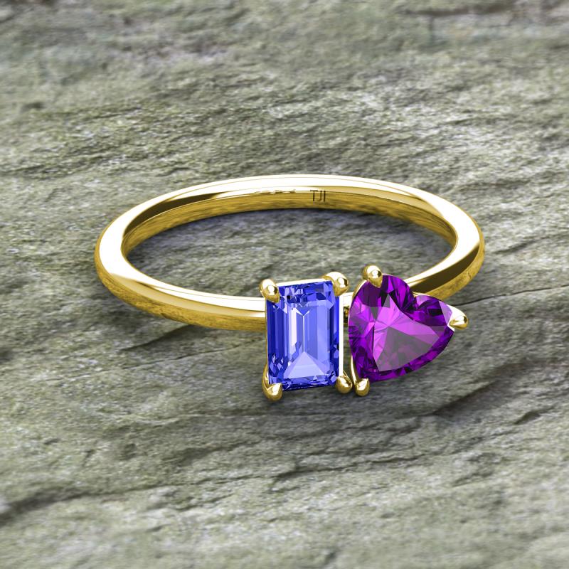 Emerald Shape Tanzanite & Heart Shape Amethyst 1.68 ctw Four Prong Womens 2 Stone Duo Engagement Ring 18K Yellow Gold More Details ...